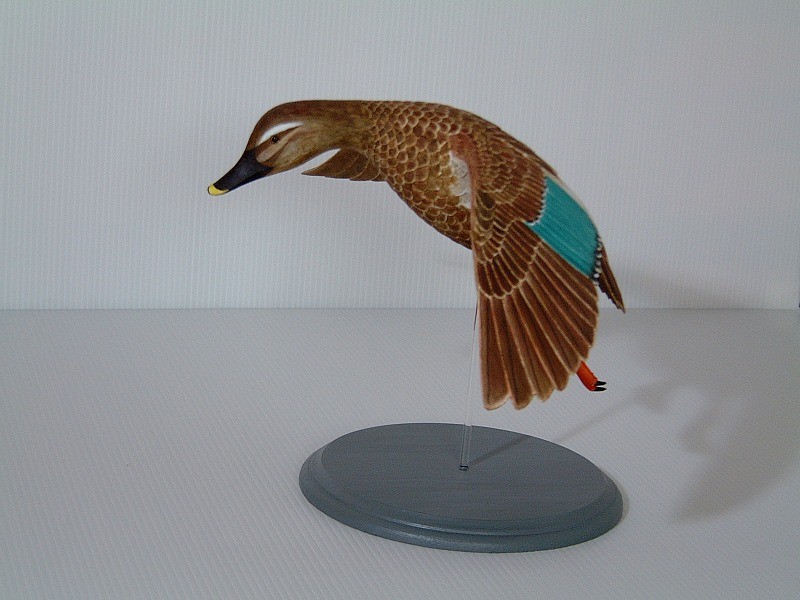 水上の目標地点に降り立つ鳥の多くは、翼、尾、足の水掻をいっぱいに広げ、進行方向と 直角に立て、体全体を前方に反らせ、パラシュートやパラグライダーの要領で降り立ちます。 翼は全開と言うよりは翼面積が最大になるように広げています。 これは、なるべく小さな進行速度 (降下速度)で、前方へ押しやる空気の運動量を最大にし、その反作用として、重力に対抗する 力を得ようとするためです。 頭や足を下げることは、重心を下げて安定性を増し、また、着水点を 見定め着水の準備をするためにも有効でしょう。 着水の直前に、翼を進行方向に羽ばたいて 逆気流を作り出し、軟着陸することもよくあります。 ( ドバトやアホウドリなどが着陸時に見せる 反り のある翼を独特に振動させる動作も 軟着陸するための逆気流を作り出す方法と考えられます。) また、着水(着地)場所が広くて、障害物がないときには、水面(地面)すれすれまで滑空降下 してきて失速し、水面滑走(地面走行)に移行してから、足でブレーキをかけて停止することもあります。